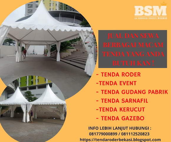 Kami Cv. Bahagia Sukses Makmur menjual dan menyewakan tenda roder,tenda vaksinasi , tenda isolasi , tenda darurat rumah sakit,Tenda Sarnafil , Tenda kerucut, Tenda weddingm Tenda Gudang, Tenda Event, Tenda Gazebo, Tenda Wisata, Dome tent Dll yang berkualitas dengan harga yang murah.
