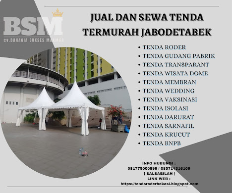 Kami Cv. Bahagia Sukses Makmur menjual dan menyewakan tenda roder,tenda vaksinasi , tenda isolasi , tenda darurat rumah sakit,Tenda Sarnafil , Tenda kerucut, Tenda wedding, Tenda Gudang, Tenda Event, Tenda Gazebo, Tenda Wisata, Dome tent,Tenda BNPB, Tenda Darurat ,Dll yang berkualitas dengan harga yang murah.